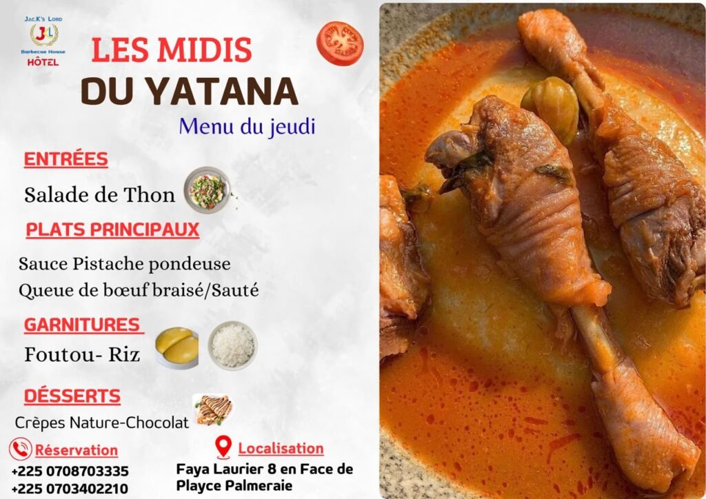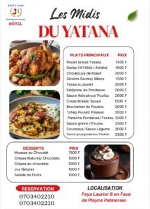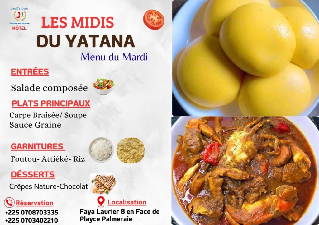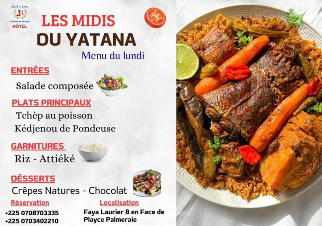 Restaurant Yatana Réservation Prénom *EmailNuméro de téléphone *Sélectionner votre réservationSalle AcadémixYégué Bar VipRestaurant YatanaAcompte0 / 180Sélectionner le réseau sur lequel vous payerez l'accompteVeillez faire le dépôt au numéro indiquéWave 0703402210TPE 2722598480Envoyer Facebook